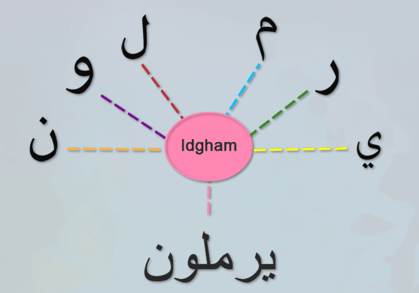 In order for the rules of idgham to take place, it is required that these letters fall at the beginning of a word, and the word before it ends with a noon sakinah or tanween, and the noon sakinah or tanween is called an tajweed rules idgham.